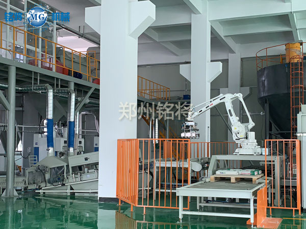 蘇州鴻川建筑材料有限公司全自動干粉砂漿生產(chǎn)線、自動包裝輸送碼垛生產(chǎn)線由鄭州銘將承建。本套生產(chǎn)線與其它生產(chǎn)線不同的是采用了氣體輸送,另外增添了自動輸送和碼垛系統(tǒng)。